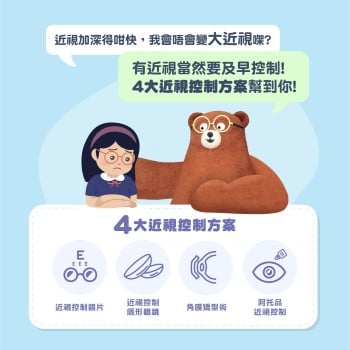 眼鏡88 一直關注香港學童近視比率高企的問題,近年致力加強學童近視控制服務,結合學童近視控制中心、專業護眼中心及眼科醫療中心,推出市場上最全面的一站式四大近視控制方案,為學童提供專業檢查及近視控制療程,延緩近視加深速度。眼鏡88期望未來繼續與各位家長攜手守護小朋友的眼睛健康!